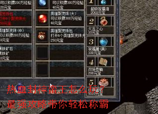 前期(过渡期):优先选择增加攻击力和生命值的装备,如“青铜斧”、“战神铠甲”,保证基础的刷怪效率和生存。